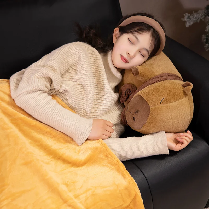Wholesale 2-in-1 Cute Capybara Cartoon Plush Toy PP Cotton Filling Mesh Lunch Break Blanket Brown Pillow Stuffed Animal Toys